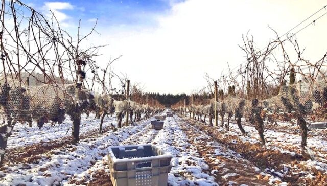 Los racimos deshidratados y con moho que penden literalmente de un hilo, han sido recolectados este 25 de enero a